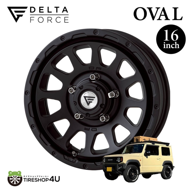 タイヤ・ホイール通販TOP > ホイール単品 > ホイール名から探す > DELTA FORCE (デルタフォース) > OVAL (オーバル) > DELTA FORCE OVAL 16x5.5J 5/139.7 +20 hab 108.8φマットブラック スズキ ジムニー JA22/JB23/JB64 デルタフォース オーバル アルミホイール単品 16インチ