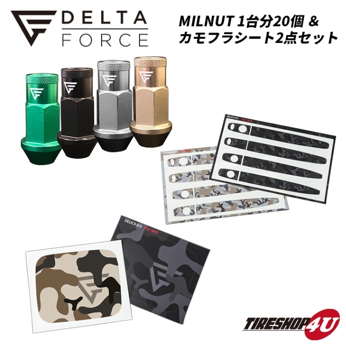 タイヤ・ホイール通販TOP > パーツ&用品 > アクセサリー > DELTA FORCE(デルタフォース) > 車種別セット > DELICA D:5(デリカ D5) > セットでお得!ミツビシ デリカD5 後期 DELTA FORCE PARTS 3点セット MILナット 1台分 20個 + カモフラシート 2種 ドアハンドル用/フューエルリッド用