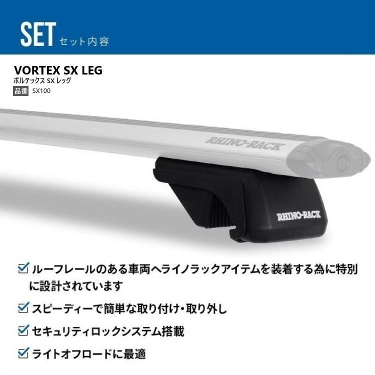 【お買い得セット】RHINO-RACK ライノラック VORTEX BAR (1260mm) BLACK 2本 WITH SX LEGS + RMCB02 バスケット + 32132 サンシーカー 2.0M オーニング 取り付けキット トヨタ RAV4 オフロードパッケージ