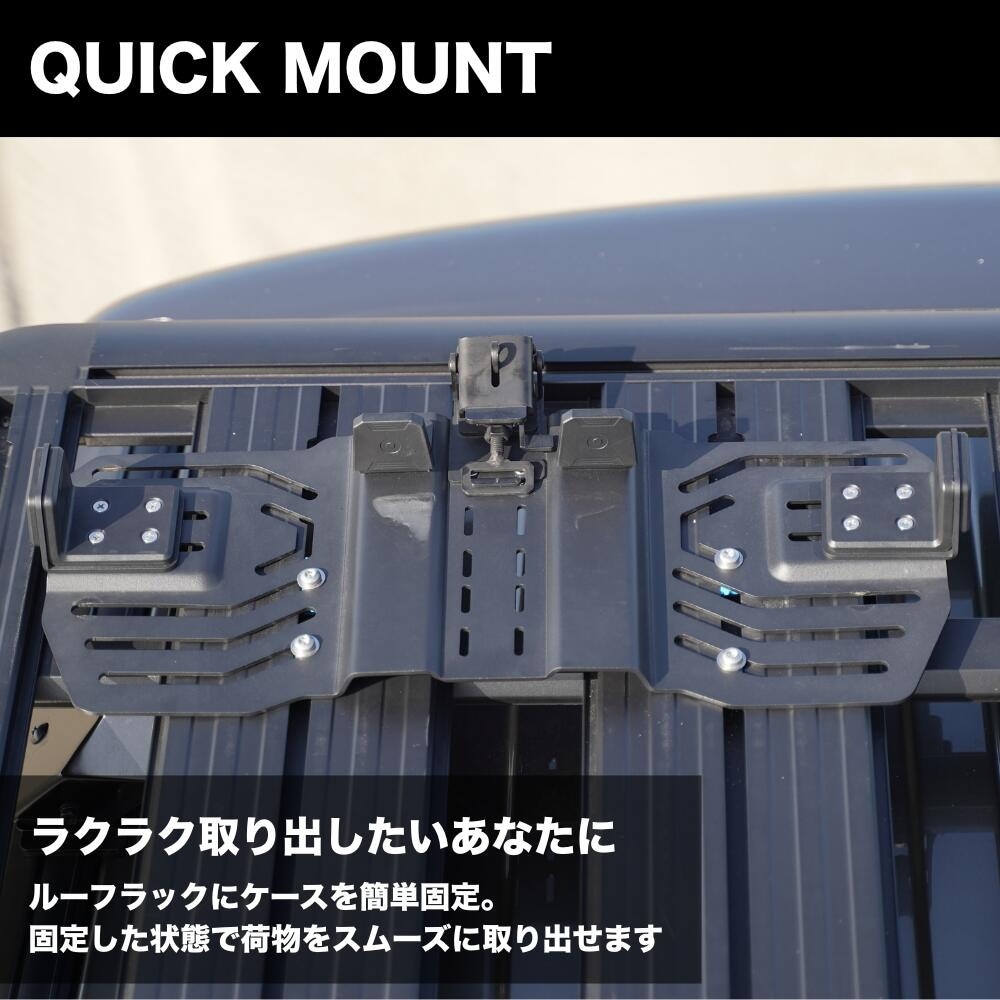 クイックマウントシステムは、ルーフラックの上にケースを素早く固定、取り外しができます。