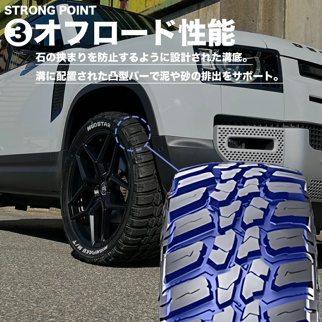 タイヤ・ホイール通販TOP > サマータイヤ単品 > ブランドから探す > MUDSTAR(マッドスター) > WANPAKU M/T > 2024年製 MUDSTAR WANPAKU M/T 185/85R16 105/103L LT WL ホワイトレター マッドテレーン 185/85-16 マッドスター ワンパクエムティー