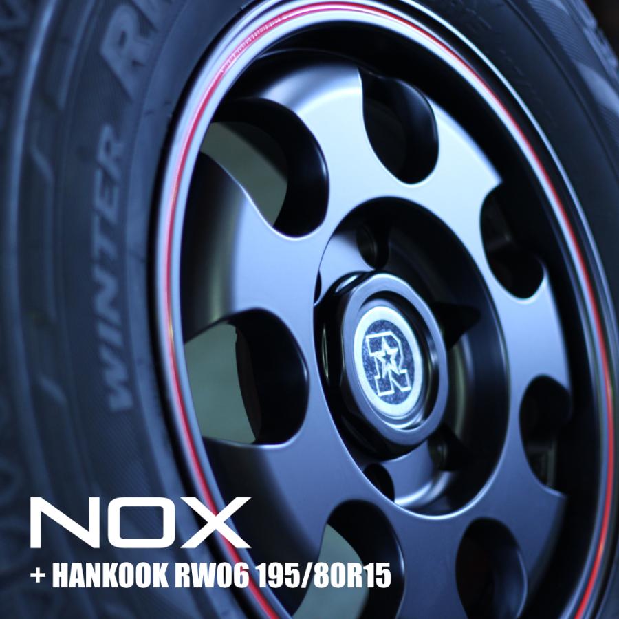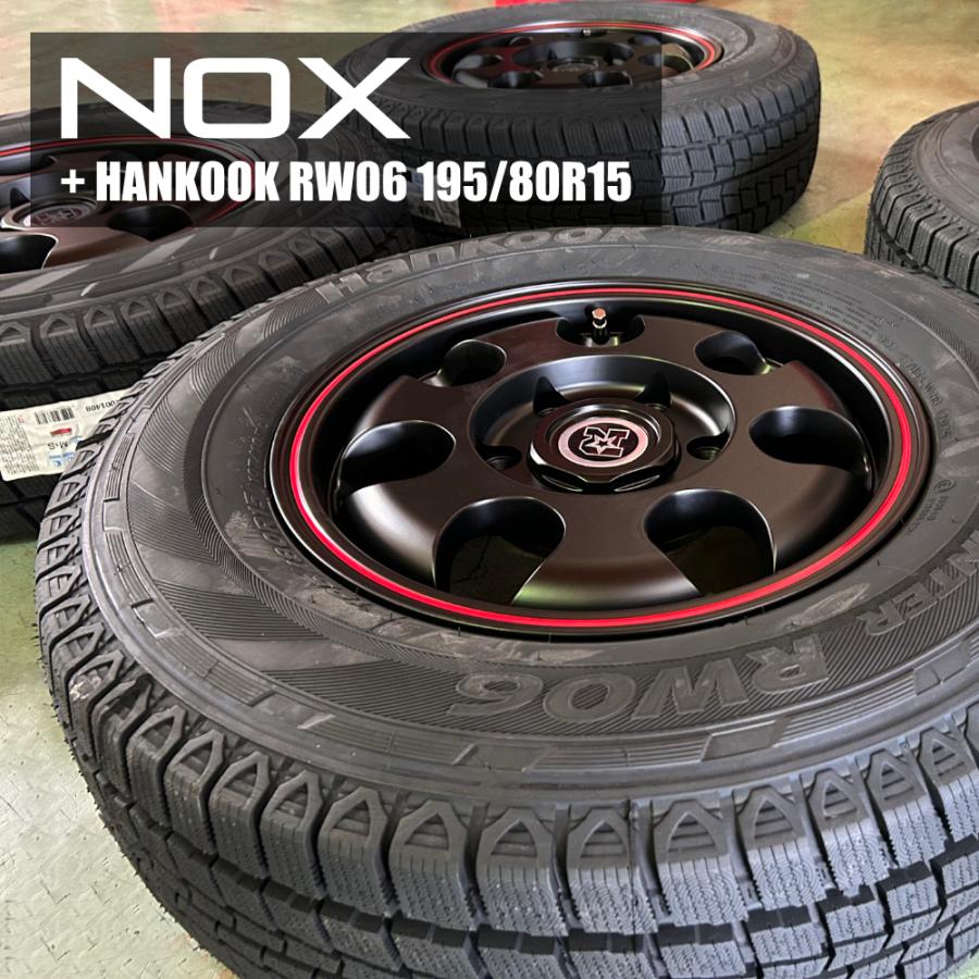 RIVAI NOX 15x6.0J 6/139.7 +32 MBRED マットブラック/レッドライン HANKOOK Winter RW06 195/80R15 107/105L 8PR リヴァイ ノックス ハンコック アールダブルゼロロク 新品スタッドレスタイヤ&アルミホイール 4本セット価格