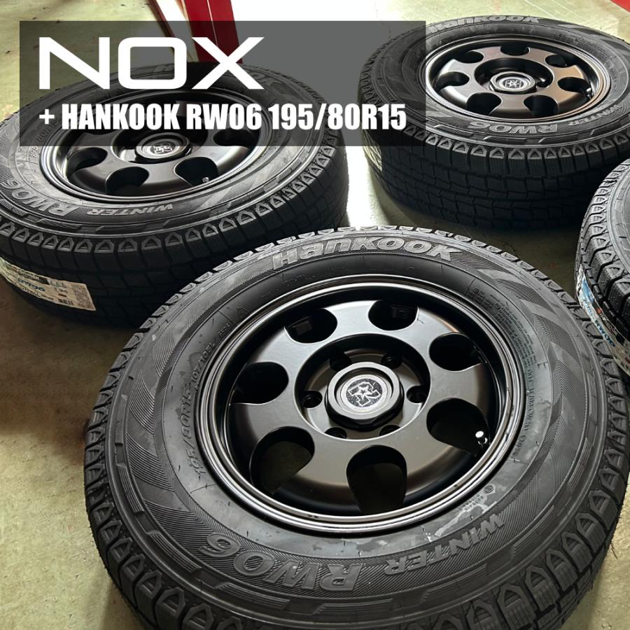 RIVAI NOX 15x6.0J 6/139.7 +32 MB マットブラック HANKOOK Winter RW06 195/80R15 107/105L 8PR リヴァイ ノックス ハンコック アールダブルゼロロク 新品スタッドレスタイヤ&アルミホイール 4本セット価格