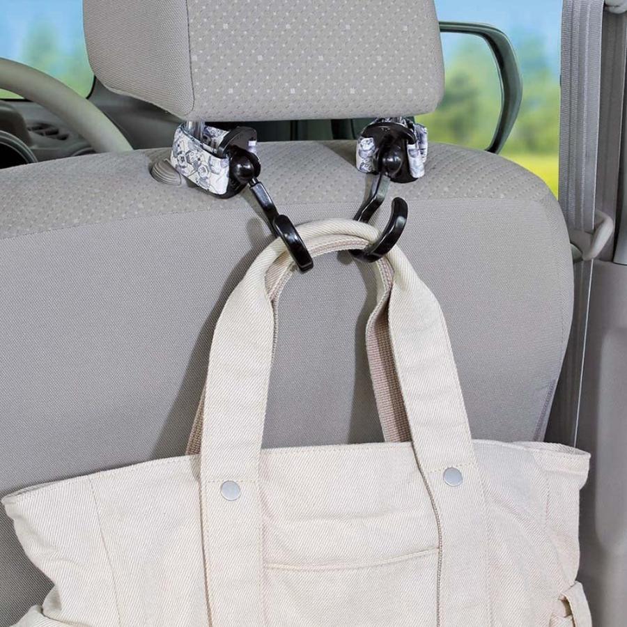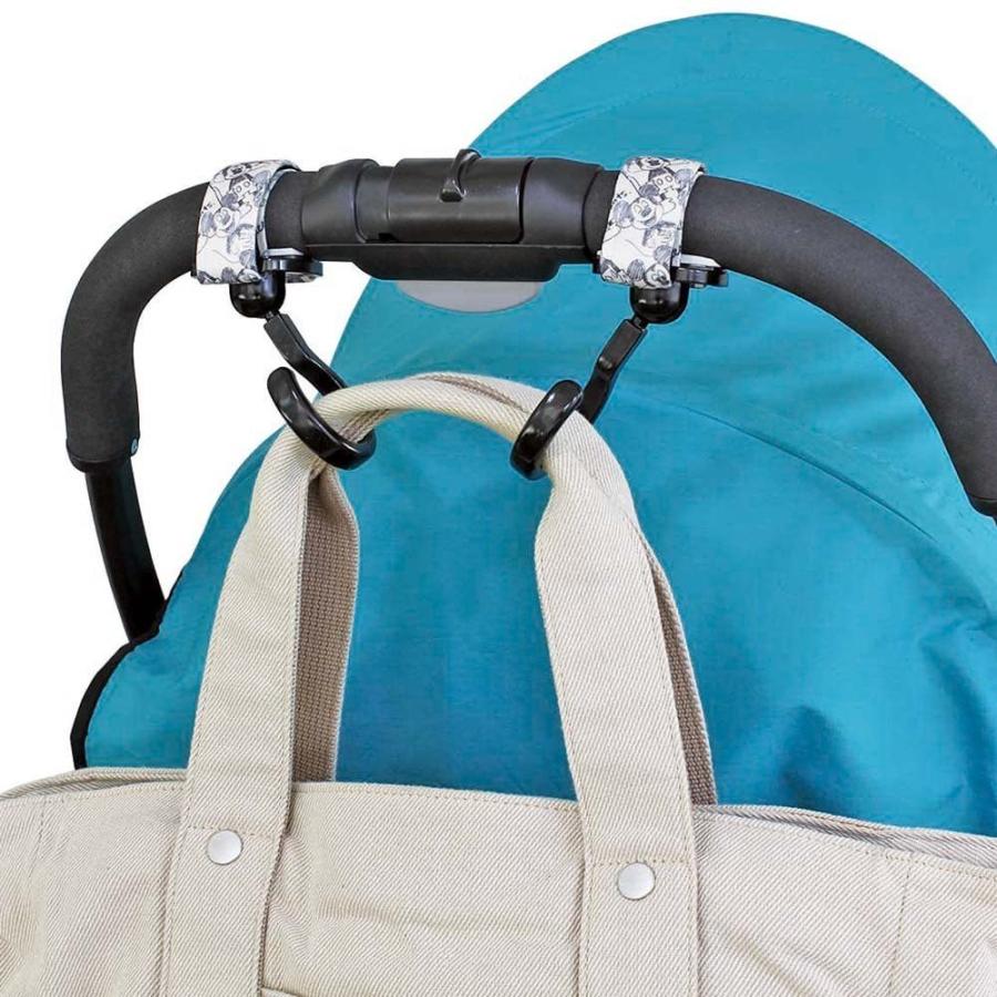 ●ベビーカーのハンドルの角度にフィットし、フックを常に下向きでご使用いただけます。またフックは360°回転するので、いろいろなものをかけやすく便利です。ベビーカーはもちろん、お車でも便利なフックです。